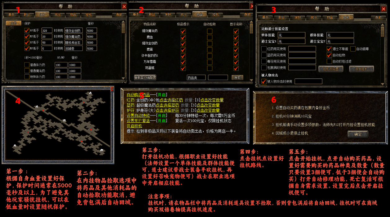 加入了智能挂机系统,解放双手。(F12内挂-挂机)根据等级职业自行设置便可。